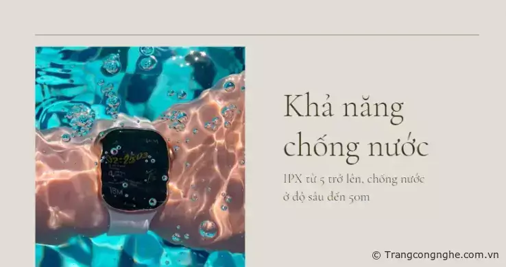 Đồng hồ thông minh đáng mua thì khả năng chống nước là một trong những tiêu chí quan trọng phải tìm hiểu kỹ. Đối với những người thường xuyên bơi lội, cần chọn đồng hồ có khả năng chống nước cao (IPX từ 5 trở lên, chống nước ở độ sâu đến 50m). Nếu chỉ cần tránh nước trong sinh hoạt hằng ngày thì có thể sử dụng sản phẩm có IPX4 trở xuống. Ngoài ra, nếu đi vào môi trường có nhiều bụi, nên chọn thêm đồng hồ có khả năng chống bụi.