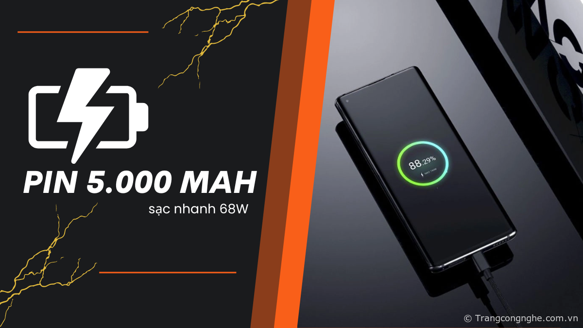 - Dung lượng pin: 5000 mAh, hỗ trợ sạc nhanh 48W