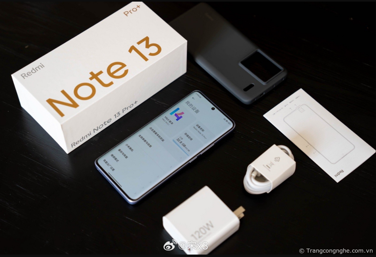 Khi mở hộp Xiaomi Redmi Note 13 Pro+, chúng ta sẽ thấy đầy đủ các phụ kiện đi kèm. Đầu tiên là giấy hướng dẫn sử dụng, giúp người dùng làm quen với các tính năng và cách sử dụng của thiết bị. Tiếp theo là ốp lưng, giúp bảo vệ và bảo vệ máy khỏi va đập và trầy xước. Ngoài ra, chúng ta còn có bộ củ cáp sạc 120W, cho phép sạc nhanh và tiện lợi. Điều này cho thấy Xiaomi luôn quan tâm và chu đáo đến trải nghiệm của người dùng.
