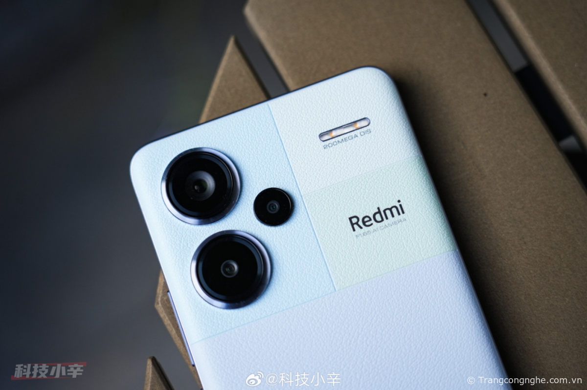 Đối với cụm camera, Redmi Note 13 Pro+ không có cụm camera nhưng được thiết kế với các ô màu khác nhau trên góc trên của mặt lưng. Thiết kế này tạo ra một điểm nhấn độc đáo và tạo sự nổi bật hơn cho máy. Với sự phân chia thành 3 ô và mỗi ô có một màu khác nhau, Redmi Note 13 Pro+ thực sự trở nên độc đáo và thu hút hơn trong thiết kế của mình.