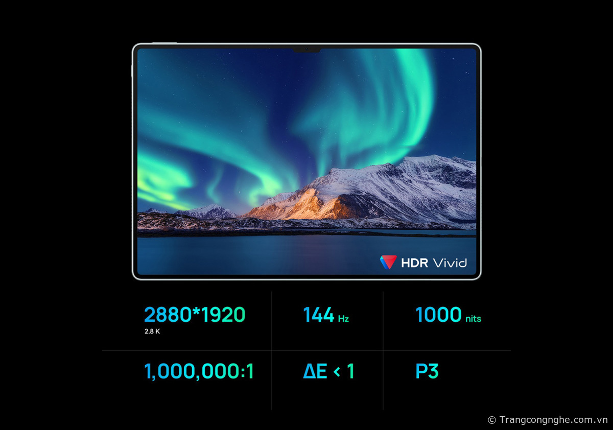 Huawei MatePad Pro 13.2 mang đến một trải nghiệm hình ảnh tuyệt vời với màn hình OLED kích thước 13.2 inch, độ phân giải 2.8K và tần số quét 144Hz giúp mỗi chi tiết trên màn hình trở nên sắc nét, mượt mà. Đặc biệt khi sử dụng trong các tác vụ đòi hỏi độ chính xác và độ phản hồi nhanh chóng như chơi game hoặc xem video. Dải màu P3 và độ tương phản 1000000:1 đảm bảo màu sắc chân thật và đen sâu làm tôn lên đường nét của hình ảnh. Độ sáng tối đa 1000 nits không chỉ làm cho màn hình rõ nét dưới ánh sáng môi trường mạnh.