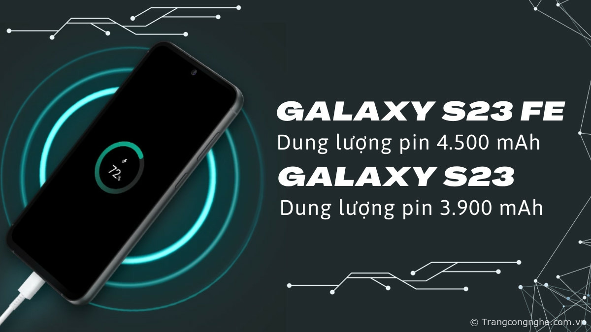- S23 FE đi kèm viên pin lớn hơn: dung lượng 4500 mAh so với 3900 mAh trên S23.