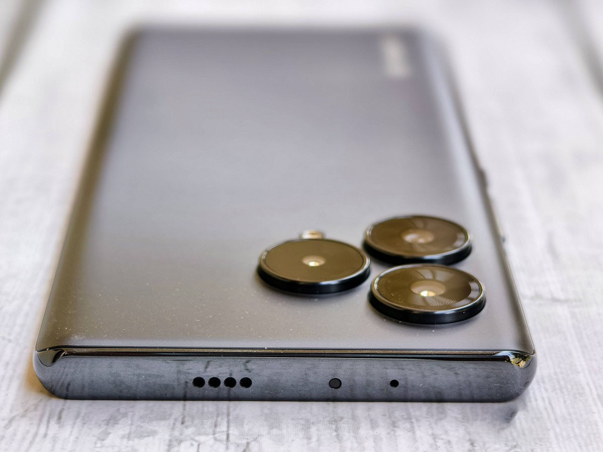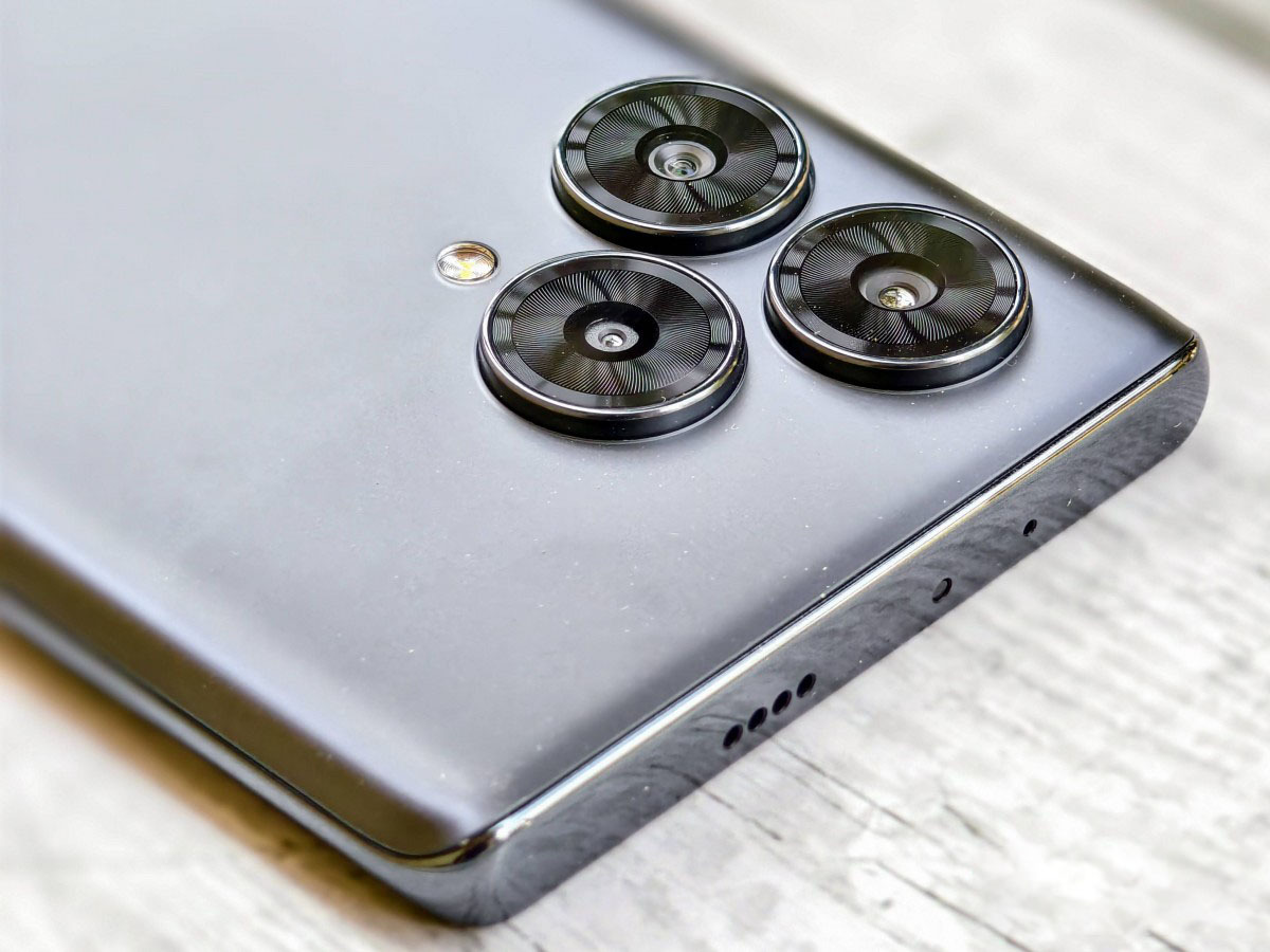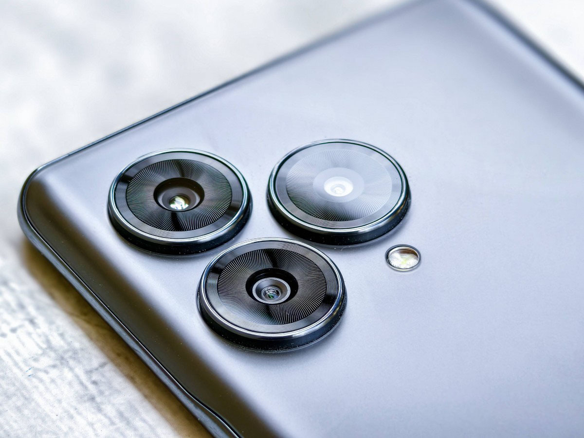 Cùng với đó là thiết lập ba camera theo hình tam giác hơi lồi lên một chút so với thân máy, đặt trong từng module hình tròn độc lập, bao gồm cảm biến chính 64MP, cảm biến siêu rộng 8MP (120° FOV) và camera macro 2MP. Camera chính sử dụng cảm biến Sony, hỗ trợ EIS và có khẩu độ f/1.9.