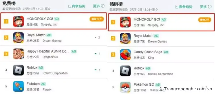 Sau khi ra mắt bản cập nhật mới với chủ đề và nội dung hấp dẫn, Monopoly Go! đã nhanh chóng đạt được doanh thu cao ngất ngưởng. Không chỉ dẫn đầu danh sách game iOS miễn phí, Monopoly Go! còn lọt vào danh sách những trò chơi iOS có doanh thu cao nhất tại Mỹ.