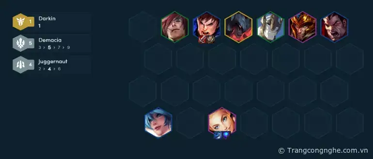 Hãy chú ý phân chia đồ để Garen và Lux có được hiệu ứng Demacia để nhận đồ ánh sáng. Bạn cũng nên xếp đội hình sao cho các tướng phía trên được hưởng lợi từ hiệu ứng aura và nhận thêm giáp/chống đỡ. 25 chỉ số là một số lượng đáng kể, gần như tương đương với việc mỗi tướng trong đội hình nhận một món đồ miễn phí. Garen sẽ là nguồn sát thương chính, vì vậy hãy xếp anh ta ở một vị trí an toàn để tránh bị tấn công mục tiêu như Lux, Aphelios hoặc Belveth. Điều này giúp tránh bị hạ gục quá nhanh. Chiến thuật này tại cấp 8 với 5 tướng Demacia là rất mạnh, nếu có cơ hội, hãy thêm Teemo vào đội hình để kích hoạt hiệu ứng Pháp Sư Đa Chú cho Sona.