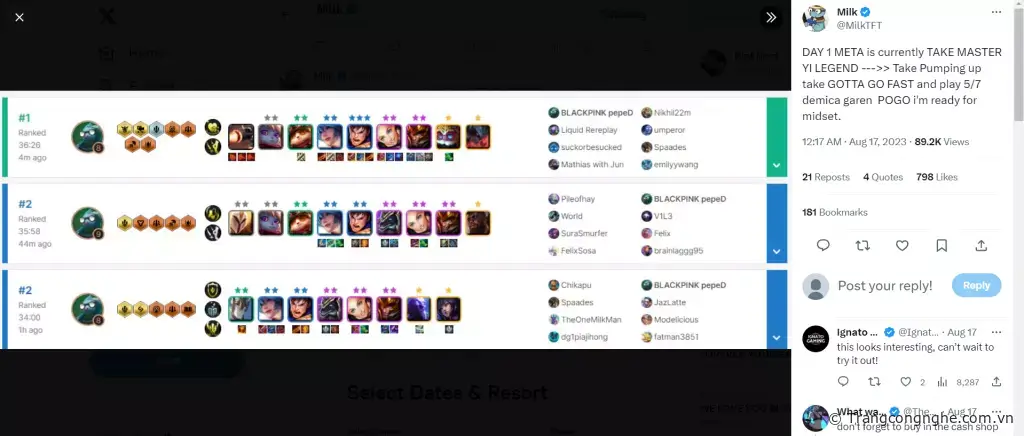 Từ khi ĐTCL Mùa 9 được ra mắt, mỗi phiên bản đều có sự thống trị của một Huyền Thoại khác nhau. Và trong ngày đầu tiên của phiên bản 13.16, các cao thủ đã nhận định chung rằng Huyền Thoại Master Yi là yếu tố quan trọng dẫn đến chiến thắng.