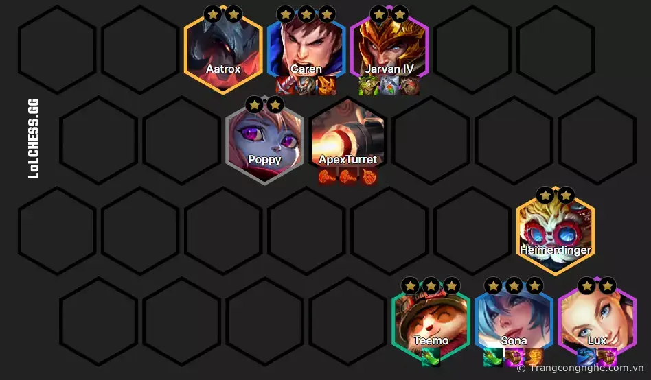 Slot còn lại có thể ưu tiên đặt Aatrox để tăng sự cứng cáp cho Garen. Bạn cũng có thể thử áp dụng lối chơi slow roll để tìm Garen và Sona 3 sao, đồng thời nâng cấp các quân cờ khác trong đội hình.