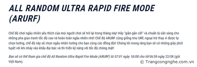 Tuy nhiên, lần này Riot đã mở chế độ ARURF với thời gian ngắn hơn ngay cả so với trước đây. Khi tin tức này lan truyền, nhiều người chơi đã đặt câu hỏi: "Nhà phát hành đang muốn làm gì?". Tuy vậy, Riot chưa cung cấp giải thích cụ thể về những quyết định này trong suốt hơn 6 năm qua. Kể từ khi người chơi Liên Minh Huyền Thoại (LMHT) phàn nàn về việc chế độ URF bị đóng cửa, Riot đã đưa ra quan điểm của họ vào năm 2017 như sau: