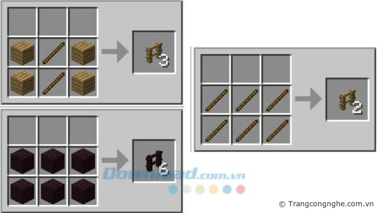 - 2 que gỗ + 4 khối gạch địa ngục được 3 hàng rào.