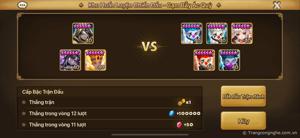 Yêu cầu trận đánh: 1 SAO (Thắng trận), 2 SAO (Thắng trong 12 lượt), 3 SAO (Thắng trong 11 lượt)