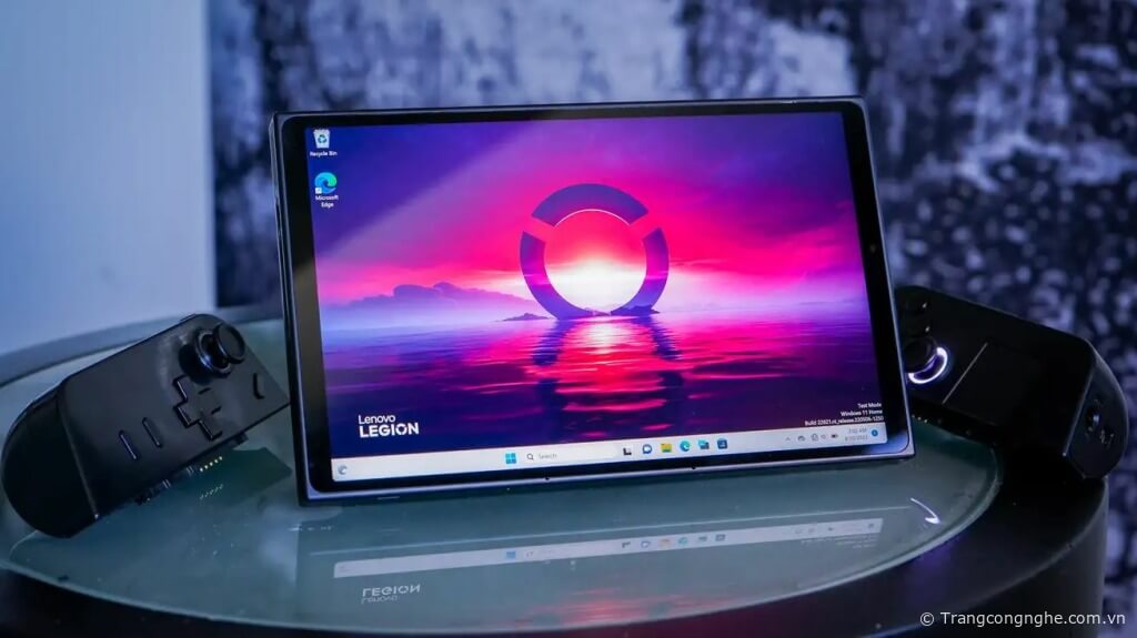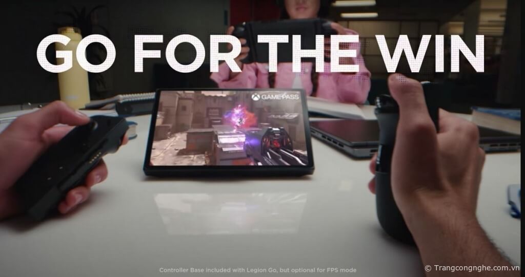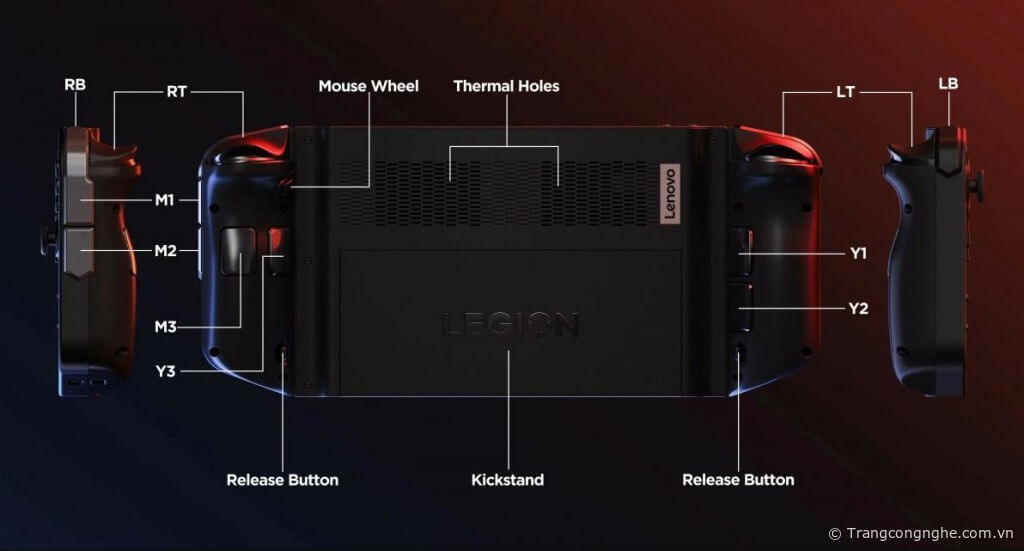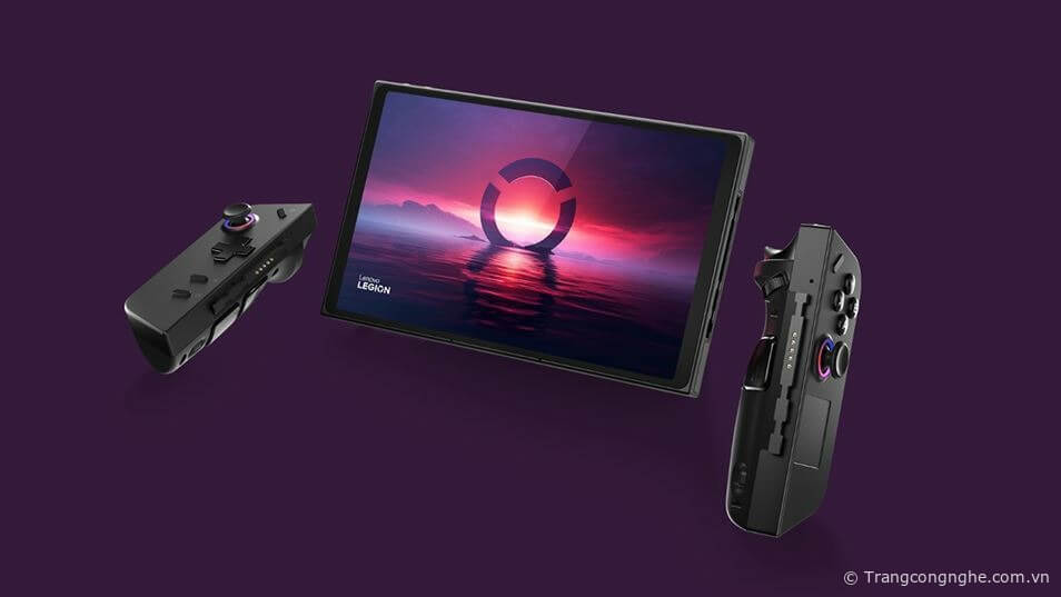 Lấy “cảm hứng” từ Nintendo Switch, Lenovo Legion Go được trang bị 2 tay cầm điều khiển có thể tháo rời mà Lenovo gọi là Legion TrueStrike cùng một chân đế.