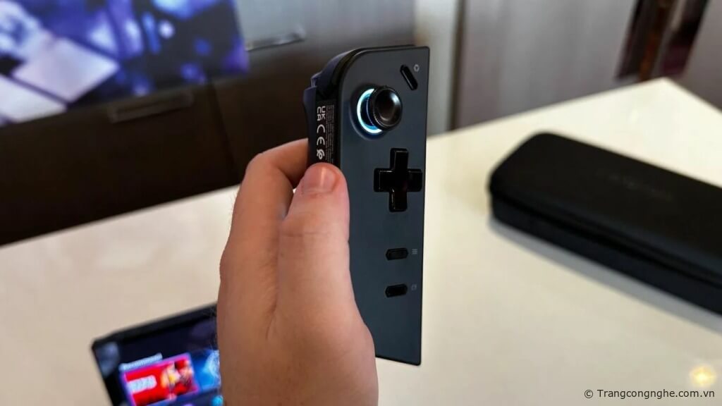 Lenovo đã tiến một bước xa hơn khi bổ sung thêm module bộ đế có thể gắn vào tay cầm điều khiển thông qua nam châm. Bộ đến điều khiển có cảm biến quang học ở phía dưới, sau khi gắn bộ điều khiển tay cầm sẽ khiến nó như một con chuột thật.