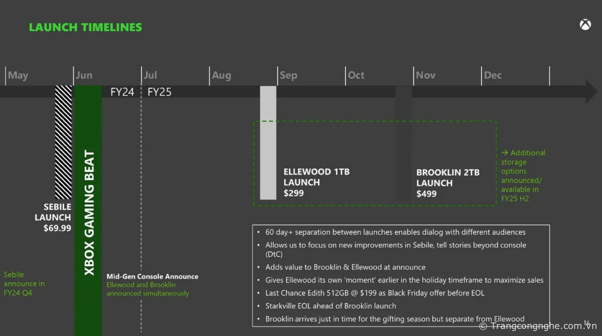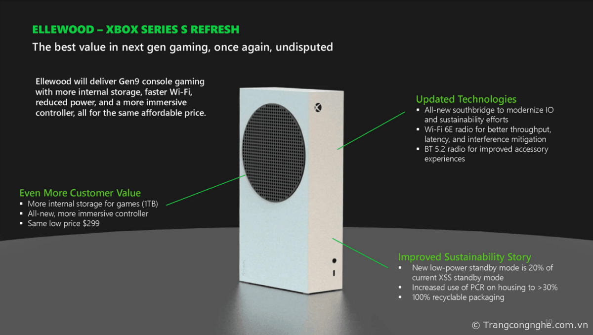 Đáng chú ý hơn, bộ tài liệu còn tiết lộ các mốc thời gian lộ trình dự kiến cho Xbox Series X 2024, cùng với Xbox Series S được làm mới với dung lượng lưu trữ 1TB. Theo đó, Microsoft vừa ra mắt Xbox Series S được làm mới với màu đen, nhưng có thể sẽ có một phiên bản làm mới khác vào năm 2024 với hỗ trợ Wi-Fi 6E và Bluetooth 5.2.