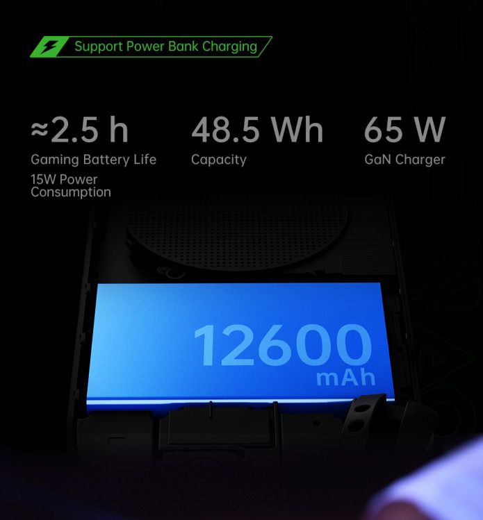 Cung cấp năng lượng cho Aokzoe A2 là viên pin 48,5Wh, có thể sạc nhanh 65W. Các tùy chọn kết nối và giao diện bao gồm cổng USB4, khe cắm thẻ nhớ microSD 4.0, cổng USB-A 3.0, giắc âm thanh 3,5 mm, WiFi 6E và Bluetooth. Thiết bị tương thích với Windows 11, đảm bảo nhiều lựa chọn chơi game AAA hiệu suất cao.