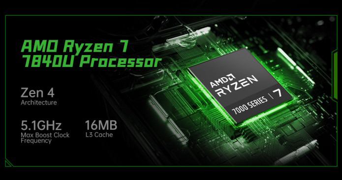 Aokzoe A2 được cung cấp sức mạnh chính đến từ bộ vi xử lý AMD Ryzen 7 7840U, được xây dựng trên tiến trình 4nm với kiến trúc “Zen 4”. Bộ vi xử lý này có 8 lõi, 16 luồng và cung cấp tốc độ xung nhịp cơ bản là 3,3 GHz, tăng lên đến xung nhịp tăng tối đa là 5,1 GHz, bộ nhớ đệm 16MB. Về đồ họa, nó sử dụng AMD Radeon 780M với kiến trúc RDNA 3, hoạt động ở tốc độ 2,7 GHz.