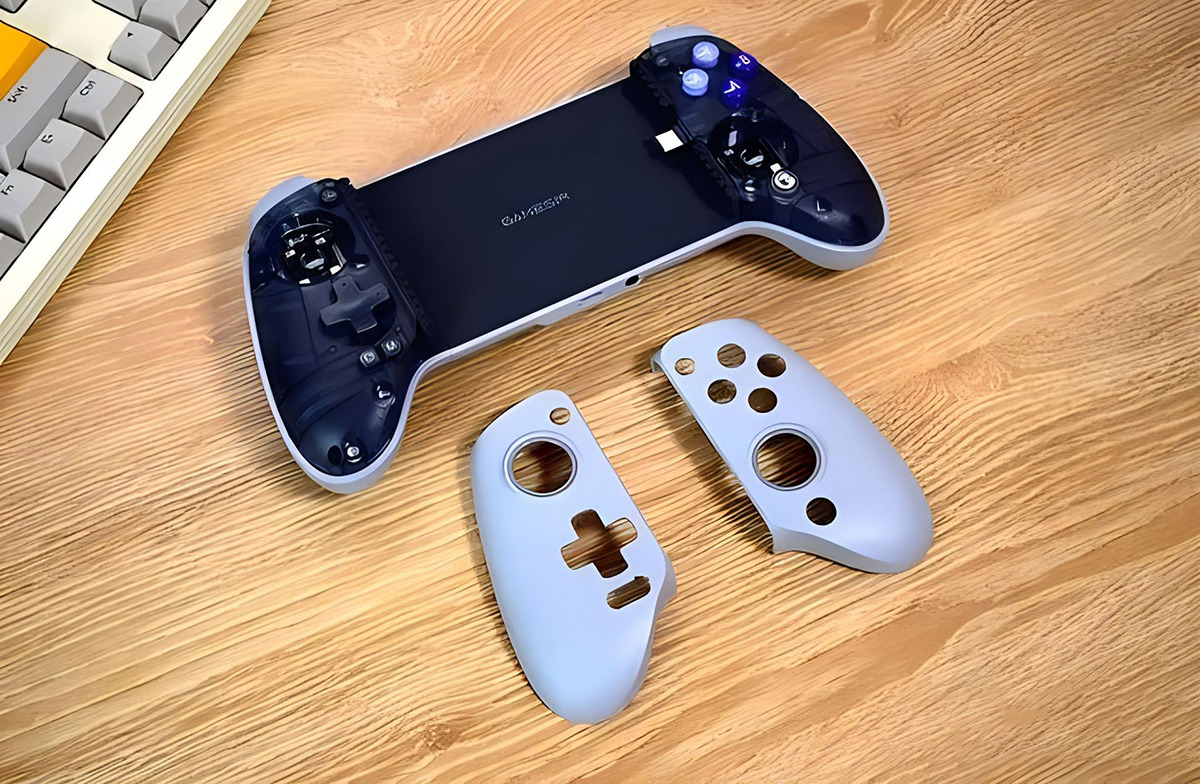 Mặt sau của tay cầm rất đơn giản, có in logo GameSir ở chính giữa, cùng hai nút tùy chỉnh (R4 và L4) được thiết kế ở vị trí cầm nắm của tay cầm, cho phép người chơi phù hợp với thói quen hàng ngày và mang đến nhiều cách chơi khác nhau hơn. Ở mặt trước, người dùng có thể tháo vỏ tay cầm để thay thế tạo phong cách cá nhân riêng của mình.