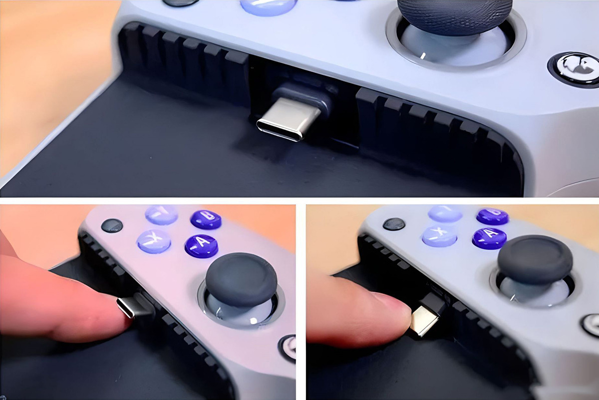 Để đảm bảo tốc độ truyền dữ liệu và phản xạ tốc độ cao, ổn định, GameSir G8 sử dụng kết nối thông qua cổng USB-C đặt phía trong bên phải tay cầm, cơ chế điều chỉnh góc giúp dễ dàng cắm thiết bị cũng như phù hợp với các điện thoại có độ dày khác nhau.