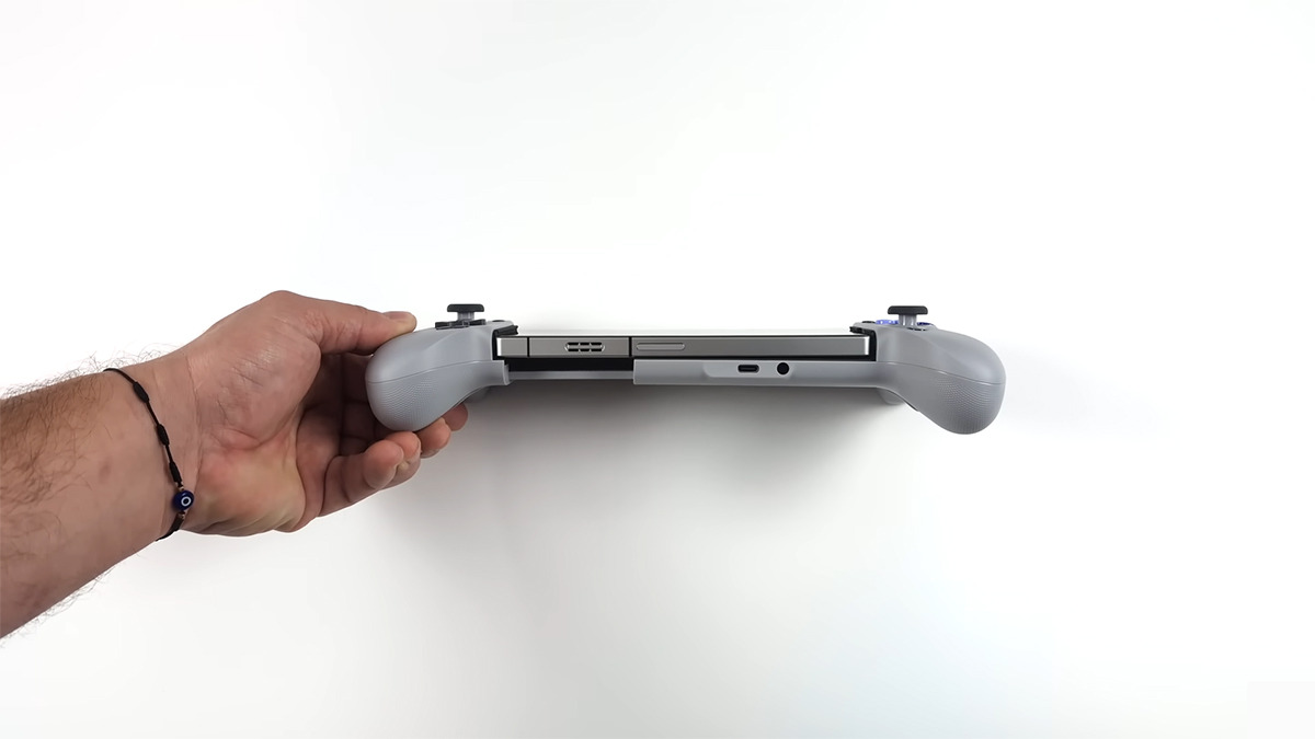 Chính giữa phía dưới của tay cầm còn có cổng sạc Type-C và giắc cắm âm thanh 3,5mm. Hai cổng kết nối này khá hữu dụng trong các trường hợp cần sạc thiết bị khi đang trong trận đấu và sử dụng tai nghe có dây bên ngoài để giảm độ trễ so với tai nghe không dây.