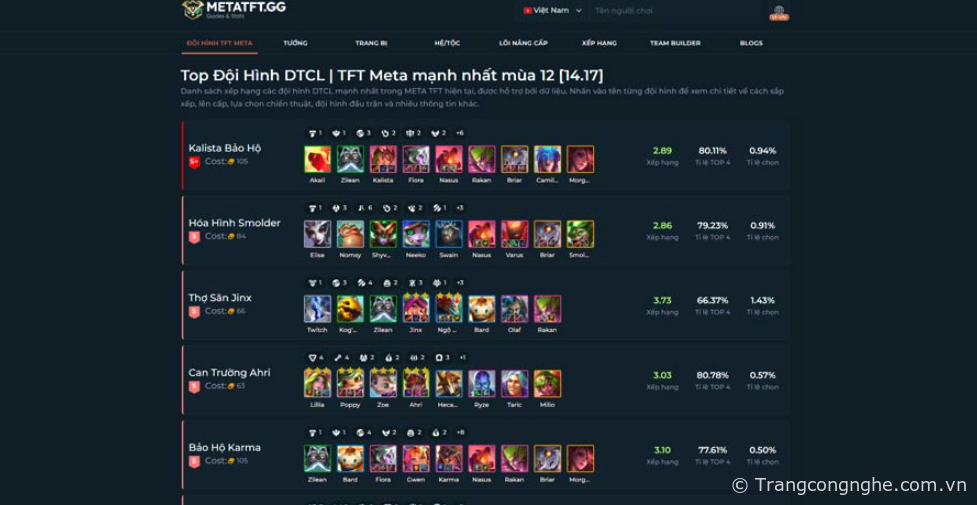 Đấu Trường Chân Lý (DTCL) là một trong những trò chơi chiến thuật theo lượt rất được yêu thích hiện nay. Trong thế giới đầy màu sắc và đấu trường cạnh tranh này, việc nắm vững thông tin về đội hình meta, chiến thuật phù hợp và các chỉ số nhân vật là vô cùng quan trọng. Chính vì lý do đó, MetaTFT.GG đã ra đời như một nguồn tài nguyên đáng tin cậy giúp người chơi có thể nhanh chóng cập nhật và làm chủ các thông tin cần thiết. Bài viết dưới đây sẽ đi sâu vào việc giới thiệu MetaTFT.GG, cách sử dụng nó hiệu quả và những gì bạn cần biết để trở thành một nhà vô địch trong Đấu Trường Chân Lý.