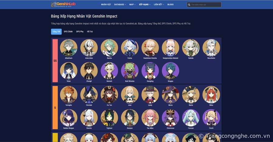 Xếp hạng đội hình Genshin Impact tại Genshinlab