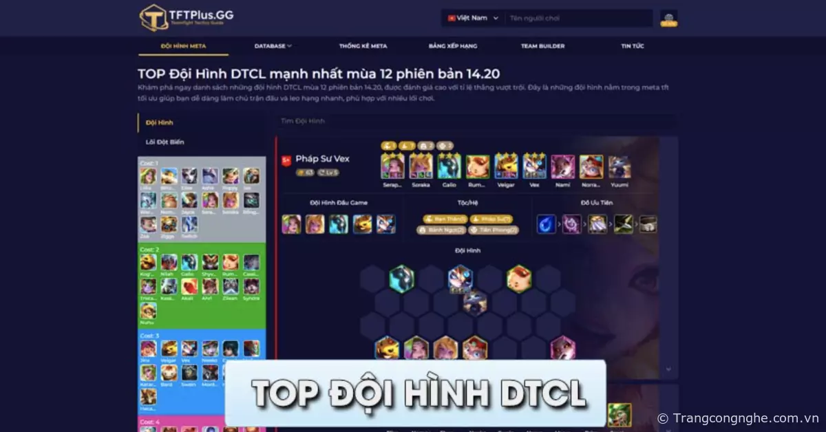 TFT Plus (Viết tắt của Teamfight Tactics Plus) là một website giúp game thủ thống kê top đội hình DTCL mạnh nhất với khả năng cập nhật meta DTCL nhanh chóng nhờ sự hỗ trợ của phân tích dữ liệu, TFT Plus đã trở thành một công cụ không thể thiếu, giúp người chơi dễ dàng leo rank và chiến thắng trong các trận đấu căng thẳng.