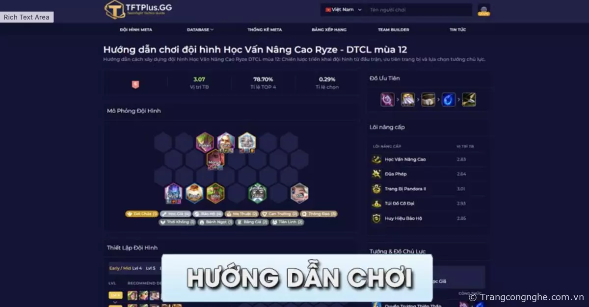 Khi bước vào giai đoạn giữa trận, việc cập nhật meta và chọn đội hình phù hợp trở nên vô cùng quan trọng. TFT Plus sẽ đưa ra các gợi ý đội hình mạnh mẽ nhất cho giai đoạn này, giúp người chơi duy trì sức mạnh trong cuộc chiến. Ngoài ra, công cụ còn đưa ra gợi ý về lõi nâng cấp giúp tăng cường sức mạnh đội hình theo tình huống cụ thể.