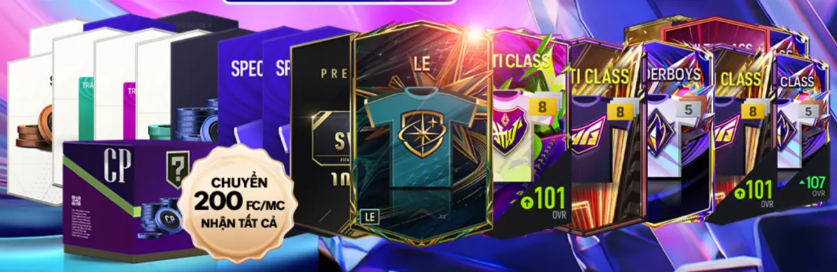 Đặc biệt, tại mốc 200 FC/MC, các HLV chắc chắn sở hữu các siêu sao Legend Of Europa hoặc Wonderboys. Ngoài ra, sự kiện còn mang đến các gói cầu thủ mạ vàng +8 như Gói RTN 102+ (6~8), Gói HW, HG, LN 101+ (6~8), cùng các vật phẩm thiết yếu như Thẻ đổi tên, SVIP, và Phiếu giảm giá thuế.