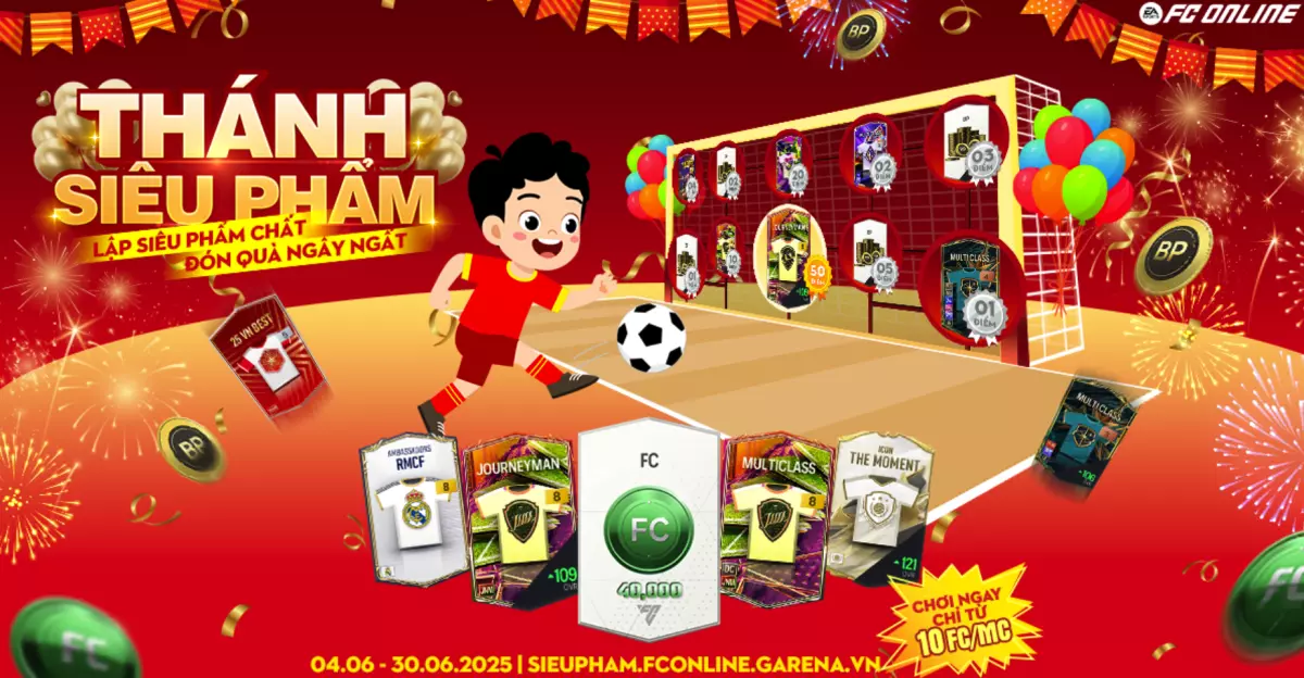 Sự kiện Thánh Siêu Phẩm đã quay trở lại đầy ấn tượng trong tháng 6/2025, mang đến cho các HLV cơ hội săn những phần quà giá trị và trải nghiệm những pha dứt điểm đỉnh cao trong FC Online. Từ ngày 04/06 đến 30/06/2025, hãy tham gia ngay tại https://sieupham.fconline.garena.vn để không bỏ lỡ cơ hội nhận hàng loạt vật phẩm siêu hot như DC, JNM, RMA mạ vàng, 25VB, LE, cùng hàng chục nghìn FC thông qua tính năng Bốc Số May Mắn.