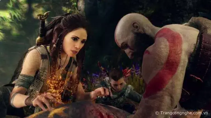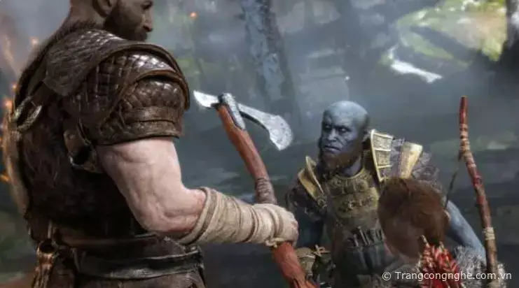 Trong đoạn mở đầu của God of War, chúng ta có thể thấy Kratos đang đốn cây về để làm làm nghi thức tang lễ cho vợ mình. Một điều nữa là có vẻ như Atreus và Kratos không thân thiết với nhau cho lắm, cậu bé rất sợ Kratos cũng như dùng kính ngữ rất nhiều – không giống như cách nói chuyện giữa cha và con bình thường.