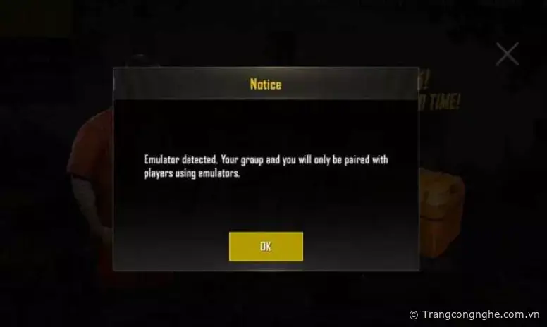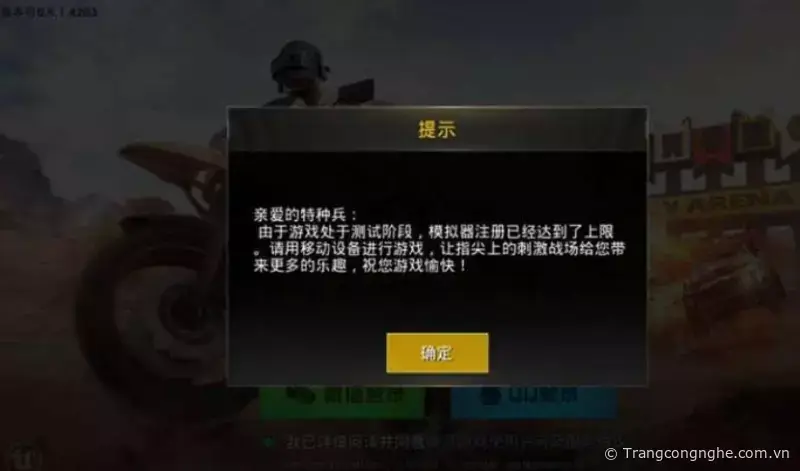 Thông báo của PUBG Mobile phiên bản Trung Quốc yêu cầu người chơi không sử dụng phần mềm giả lập để truy cập game