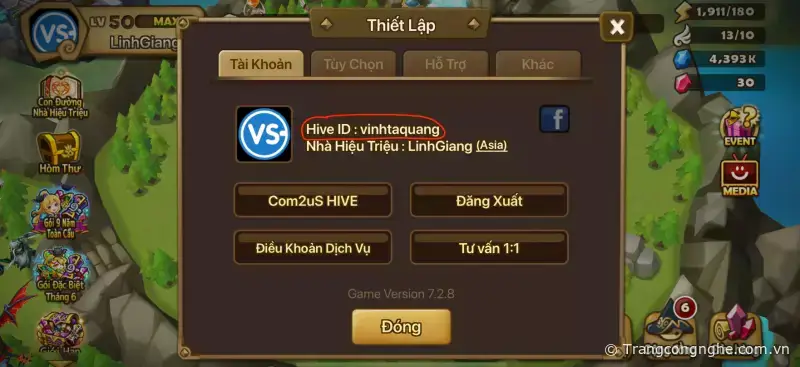 Nhập HIVE ID (Mã ID mà nhà cung cấp sẽ cho bạn. Để kiểm tra bạn có thể làm theo hình ảnh phía dưới)