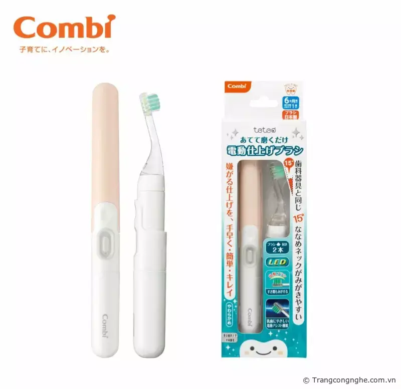 Combi Teteo là thương hiệu bàn chải điện đến từ Nhật Bản. Đây là giải pháp chăm sóc răng miệng tối ưu bởi hiệu quả làm sạch vô cùng ấn tượng, đáp ứng đầy đủ tiêu chuẩn an toàn cho trẻ em và đặc biệt được thiết kế phù hợp với cấu tạo răng miệng trẻ em Châu Á.