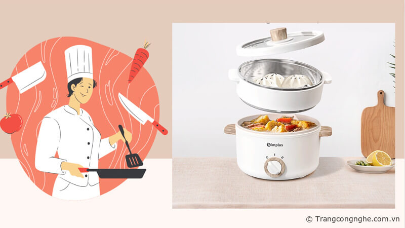 Với công suất 600W, dung tích vừa đủ cho 1-3 người sử dụng, thiết bị nhà bếp này sẽ hỗ trợ bạn đáng kể trong công việc nấu nướng. Nồi đi kèm xửng hấp, giúp bạn tiết kiệm thời gian chế biến cho nhiều món ăn khác nhau.