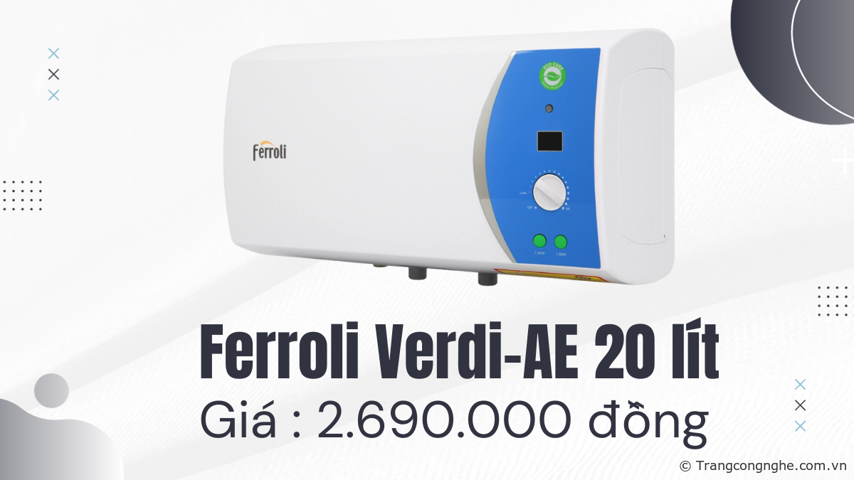 Dung tích 20 lít phù hợp cho nhu cầu sử dụng của gia đình 2 đến 3 người. Bình nóng lạnh Ferroli Verdi-AE 20 lít có giá bán 2.690.000 đồng.