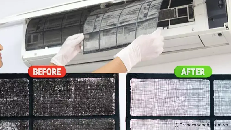 Lưới lọc dàn lạnh bị bám bụi bẩn
