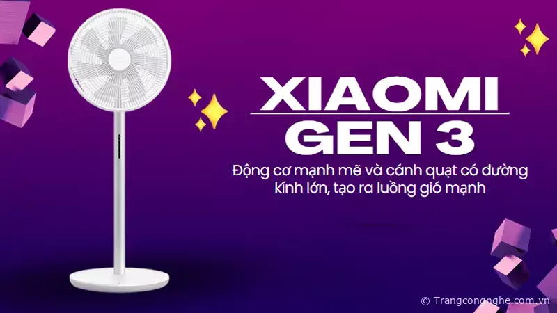 Quạt Xiaomi Gen 3 được trang bị động cơ mạnh mẽ và cánh quạt có đường kính lớn, tạo ra luồng gió mạnh và mát mẻ trong không gian.