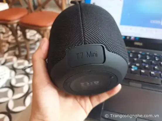 Loa có kích thước 102 x 102 x 107.5 mm, nặng 0,5 kg. Đối với mình thì kích thước này chưa được “mini” cho lắm. Nhưng bù lại, loa được gắn thêm một dây treo móc cực chắn chắn, xách tay hoặc treo vào đâu đó rất tiện. Đây là một chi tiết bổ sung khá nhỏ nhưng lại mang lại mang tới sự khác biệt lớn đối với tính di động của T7 mini.