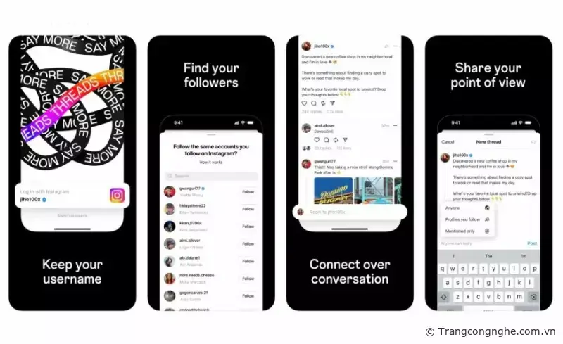 Threads là ứng dụng được thiết kế để cung cấp nền tảng mạng xã hội tương tự Twitter của tỷ phú Elon Musk. Ứng dụng trò chuyện này dựa trên văn bản giúp người dùng thể hiện ý kiến một cách chi tiết hơn. Người dùng có thể thảo luận về mọi thứ từ các chủ đề mà họ quan tâm hàng ngày đến với cộng đồng, bạn bè xung quanh của họ. Bạn có thể theo dõi, quan tâm và kết nối trực tiếp với những người sáng yêu thích và những người trong cộng đồng chung sở thích với bạn. Điều này giúp bạn dựng một cộng đồng theo dõi trung thành của riêng bạn để chia sẻ ý tưởng, quan điểm và sự sáng tạo với thế giới.