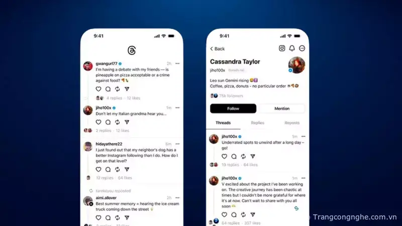 Khi truy cập trang cá nhân của những tài khoản đã theo dõi trên Twitter, bạn sẽ thấy giao diện không chỉ rõ ràng mà còn bắt mắt hơn. Trên cùng một không gian hiển thị, news feed của Twitter cho cảm giác tối ưu với đầy đủ thông tin liên quan. Ảnh hiển thị trên Threads cũng có kích thước lớn hơn so với Twitter. Điều này khá dễ hiểu khi ứng dụng mới được phát triển dựa trên nền tảng Instagram với hình ảnh là trung tâm.