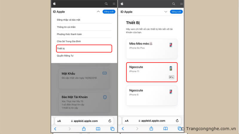 Bước 3: Trong phần "Thiết bị", lựa chọn thiết bị mà bạn muốn gỡ bỏ thẻ ngân hàng liên kết với ví Apple Pay.
