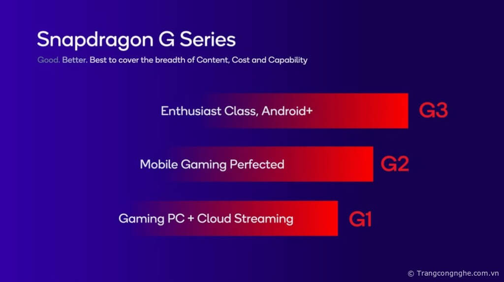 Thế hệ thiết bị chạy Snapdragon G Series mới sẽ là nơi tốt nhất để game thủ chơi các tựa game yêu thích của họ, mang đến cho họ khả năng lựa chọn từ đám mây, máy console, Android hoặc PC khi đang di chuyển.”