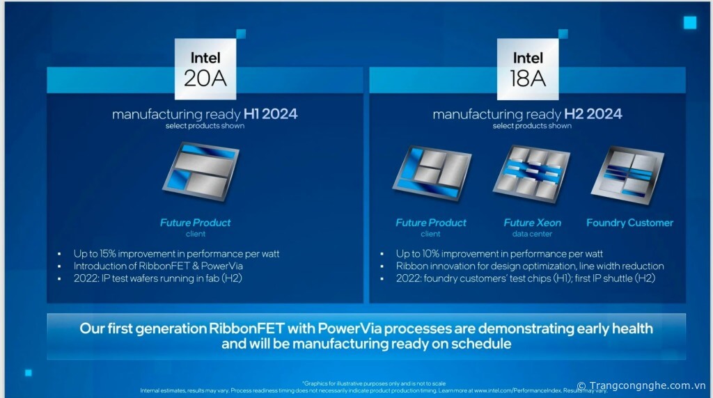 Intel 4 sẽ tập trung vào hiệu quả sử dụng năng lượng, mang lại hiệu suất cao hơn và công nghệ vượt trội hơn so với các đối thủ. Với việc phát hành bộ xử lý Meteor Lake, Intel 4 sẽ thể hiện sức mạnh thực sự của nó và như chính Intel đã cam kết, quy trình này sẽ là một bước đột phá cho bộ phận đúc đang suy yếu của công ty. Intel cho biết thêm, quy trình Intel 3 cũng đang đạt được kết quả đáng mong đợi vì quy trình dự kiến ra mắt nửa cuối năm nay trong khi dây chuyền 20A & 18A dự kiến tương ứng cho Quý 1 và 2 năm 2024.