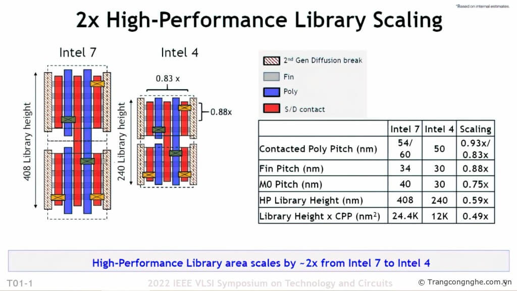 Intel 4 (trước đây là quy trình 7nm) đã được đổi tên, sản phẩm đầu tiên của Intel được triển khai kỹ thuật in thạch bản EUV. EUV là một công nghệ quang khắc giúp tạo ra những đường cắt nhỏ hơn trên con chip, từ đó tăng được mật độ bóng bán dẫn gấp đôi so với Intel 7 hoặc 10nm ESF được thiết kế trước đó.