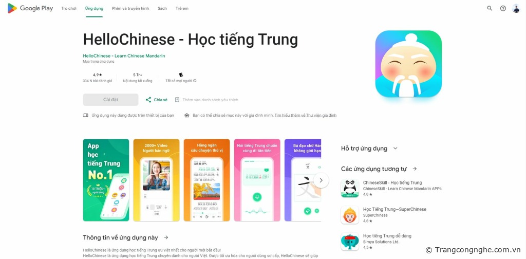 Hello Chinese là một ứng dụng phù hợp cho người mới bắt đầu học tiếng Trung. Thông qua các câu chuyện, video clip được ghi bởi người bản xứ cùng nhiều công nghệ tiên tiến, người dùng có thể học các kỹ năng nghe, nói, đọc, viết một cách hiệu quả nhất.
