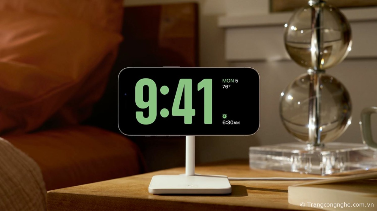 StandBy: Chế độ "StandBy" biến iPhone của bạn trở thành một trung tâm thông báo cực kỳ tiện lợi. Để sử dụng tính năng này, người dùng chỉ cần sạc iPhone và đặt máy nằm ngang trên bàn hoặc trên đế sạc. Bên cạnh đó, StandBy còn có khả năng hiển thị một loạt widget thông tin khác nhau, từ thông báo, tình hình chứng khoán cho đến thời tiết hiện tại, theo sắp xếp của người dùng.