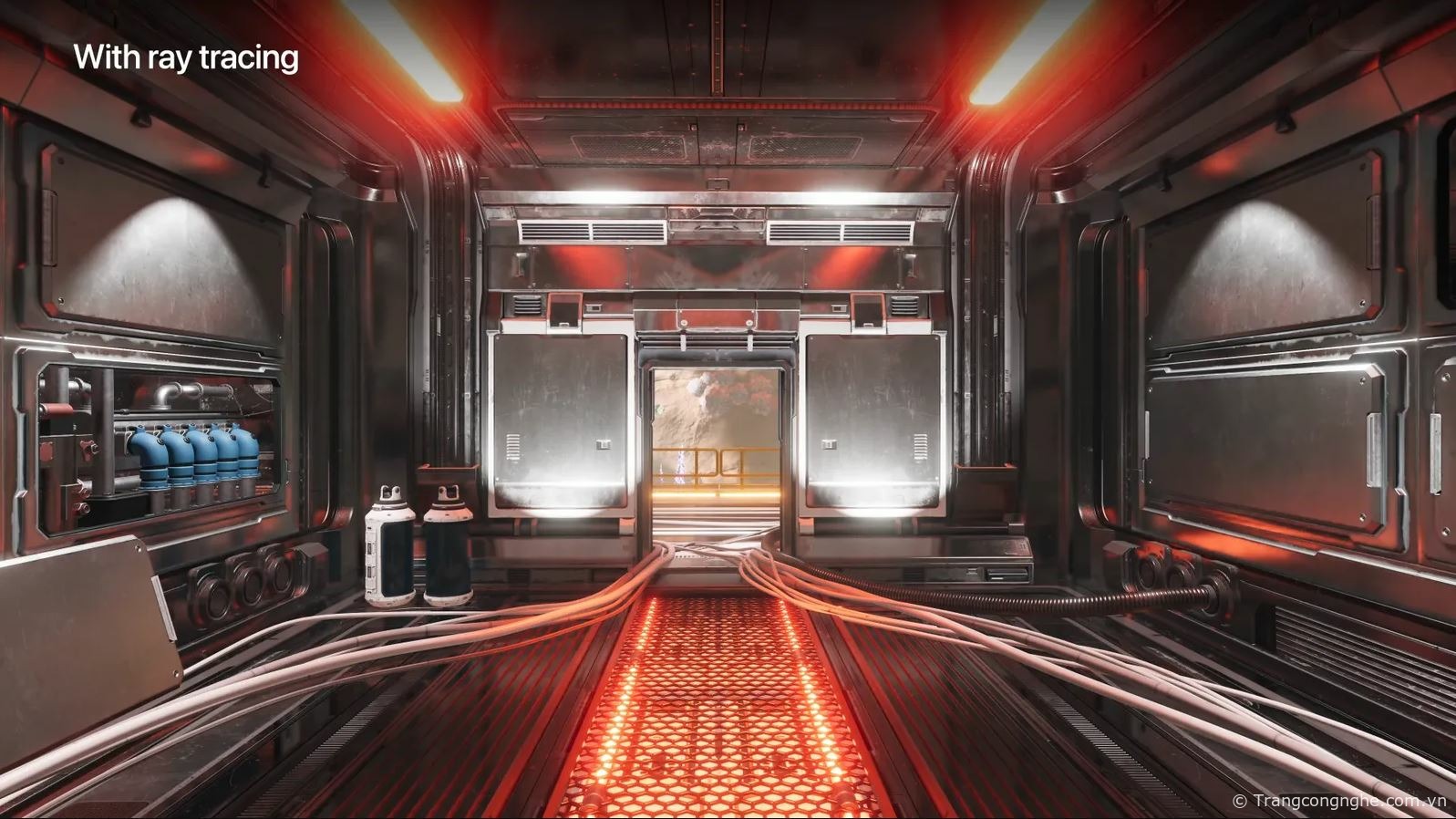 Apple A17 Pro đã mang tính năng Ray Tracing lên dòng iPhone 15 Pro, nhờ vào sức mạnh của A17 Pro SOC. Con chip này có kiến trúc mới do Apple thiết kế với tổng cộng 6 nhân, với 2 nhân hiệu suất cao mạnh hơn tới 20% so với thế hệ trước.