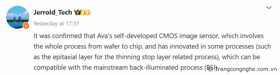 Tài khoản @Jerrold_Tech đăng trên Twitter cho biết, quá trình phát triển của Huawei sẽ trải dài từ các tấm wafer đến chipset, kết hợp một số thay đổi sáng tạo, đặc biệt là làm mỏng các lớp liên kết với các lớp epiticular. Những cải tiến này cho phép tương thích với công nghệ chiếu sáng sau (back-illuminated BSI) phổ biến.