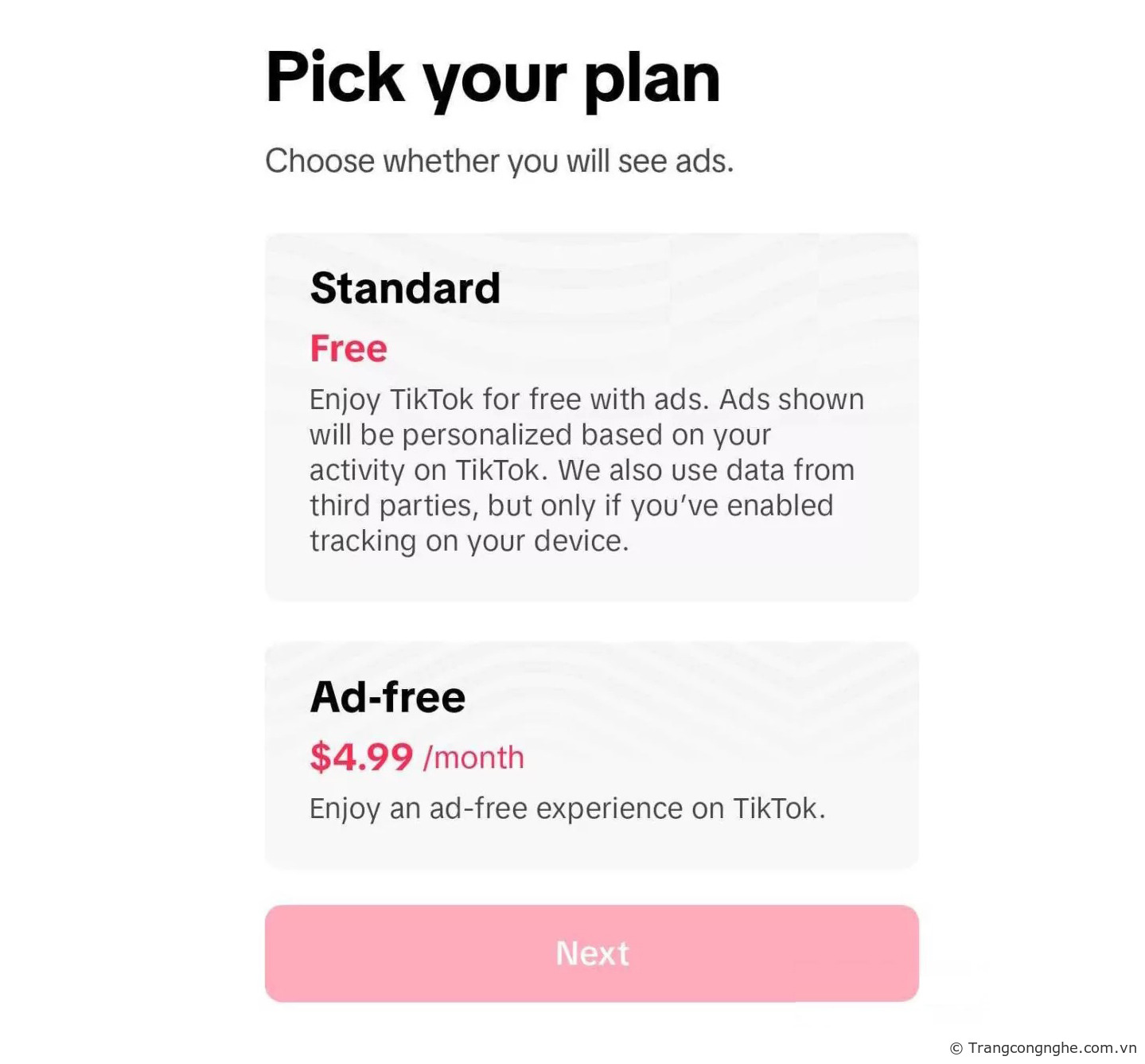 TikTok đang trong giai đoạn thử nghiệm, người dùng có thể tận hưởng trải nghiệm lướt video không quảng cáo với mức phí 4,99$ mỗi tháng.