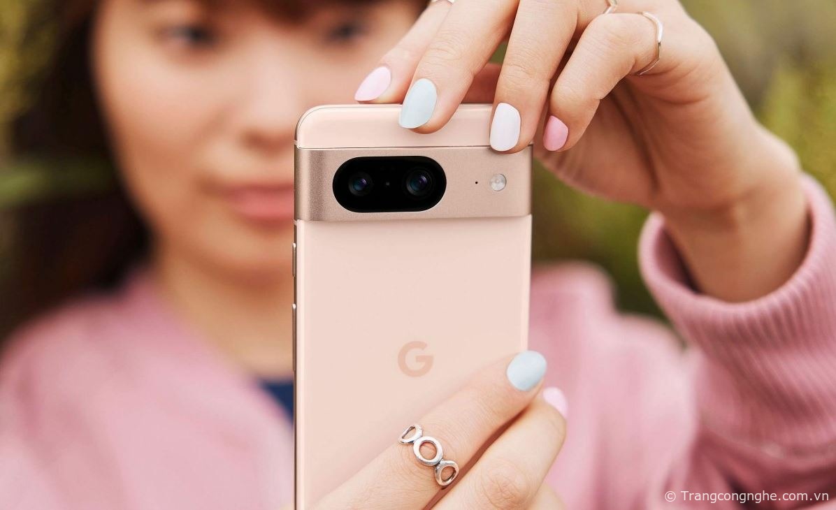 Không giống với mẫu Pro, Pixel 8 có camera siêu rộng mới độ phân giải 12 MP với khả năng tự động lấy nét và macro, kết hợp camera chính 50 MP Octa-PD với khả năng zoom số 8x. Ở mặt trước điện thoại còn có camera selfie 10,5 MP.