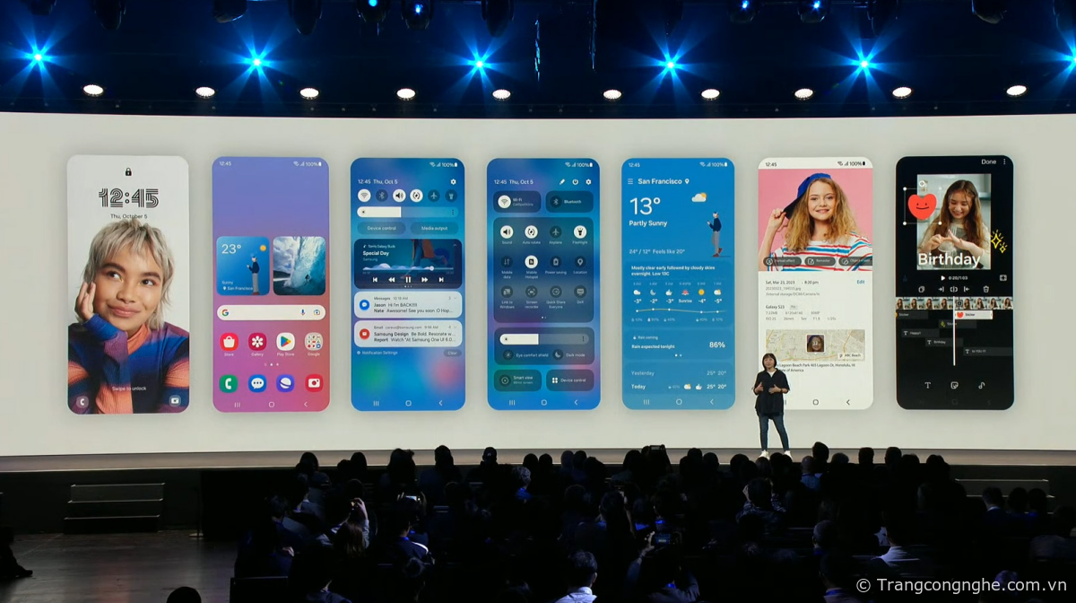 Tại sự kiện SDC23 (Samsung Developer Conference) gần đây, Samsung đã chính thức giới thiệu phiên bản One UI 6. Phiên bản này đã được nâng cấp với nhiều tính năng trí tuệ nhân tạo mới trong ứng dụng Thư viện, cải thiện giao diện của bảng Cài đặt nhanh và mang đến một bộ phông chữ hoàn toàn mới.